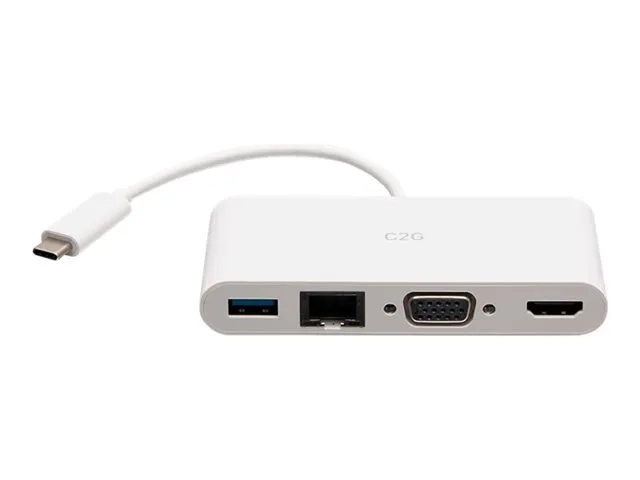 C2G USB C to HDMI, VGA, USB A & RJ45 Adapter - 4K 30Hz - White - Station d'accueil - USB-C / Thunderbolt 3 - VGA, HDMI - 1GbE