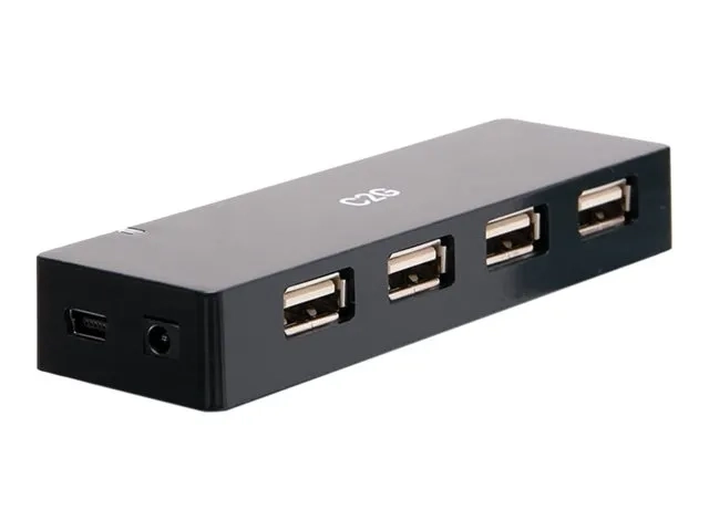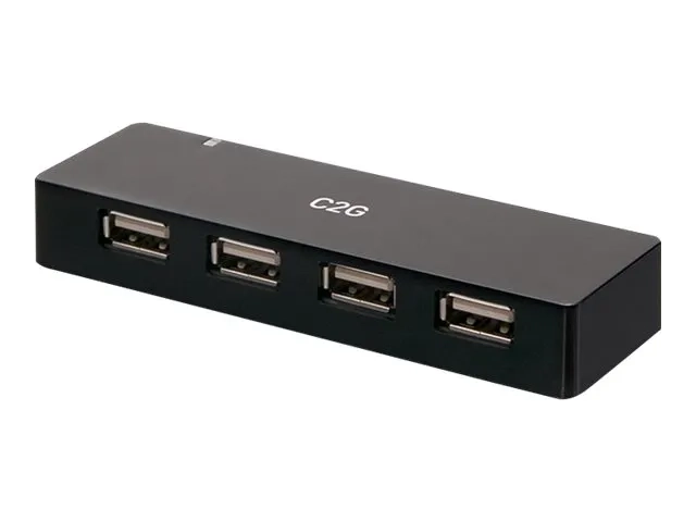 Le concentrateur USB-A à 4 ports C2G offre une solution pratique pour étendre les options de connectivité. Avec quatre ports USB 2.0, ce concentrateur permet de connecter plusieurs appareils simultanément, ce qui facilite la gestion des périphériques et des besoins de recharge. L'adaptateur secteur externe fourni délivre une tension stable de 5 V à 3 A, garantissant des performances fiables pour tous les appareils connectés.