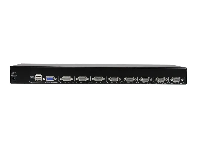 - Permet de contrôler jusqu'à 8 ordinateurs directement connectés et jusqu'à 64 ordinateurs avec une installation en cascade de 8 commutateurs KVM supplémentaires
