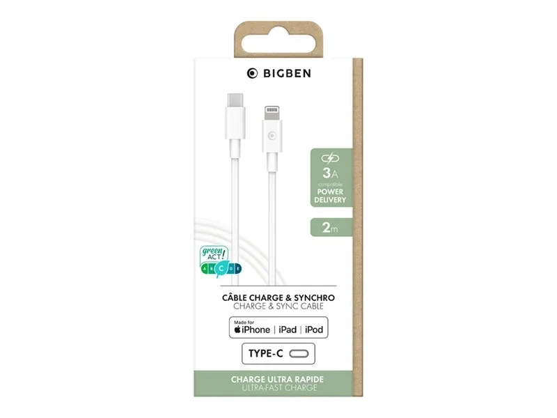 BIGBEN Connected - Câble Lightning - USB-C mâle pour Lightning mâle - 2 m - blanc
