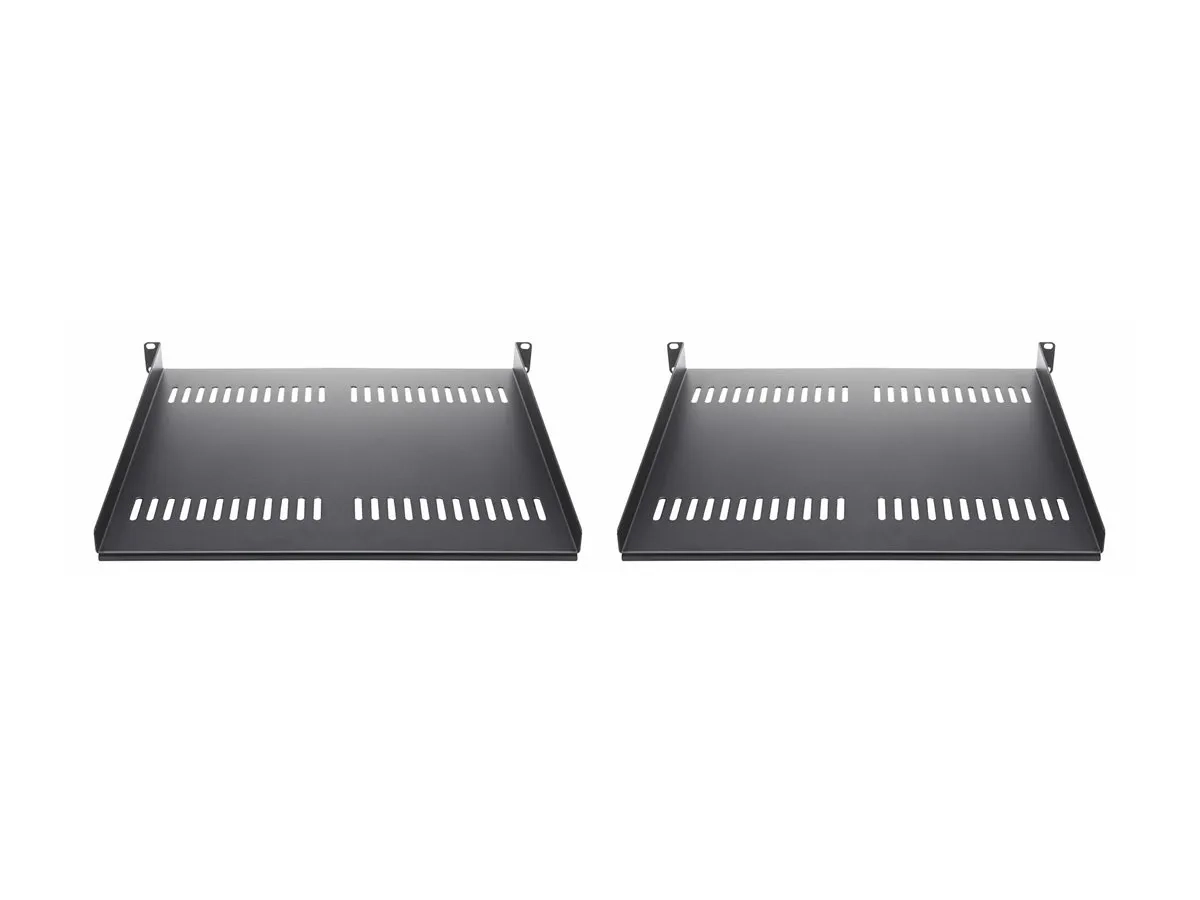 Ce lot de 2 étagères rack 1U ajoute un espace de stockage peu encombrant à tout rack serveur ou armoire conforme à la norme EIA-310 de 19 pouces. L'étagère est ventilée pour améliorer le flux d'air vers l'équipement critique. Des écrous en cage, des vis et des rondelles sont inclus pour l'installation.