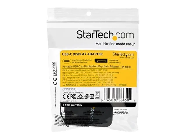 Cet adaptateur compact USB-C vers DisplayPort offre une solution ultra-portable pour connecter votre ordinateur portable USB Type-C ou tout autre appareil à un moniteur ou un écran DP 4K ou 8K. L''adaptateur dispose d''un anneau porte-clés qui se fixe facilement au sac de votre ordinateur portable ou de votre vidéoprojecteur pour une portabilité optimale.