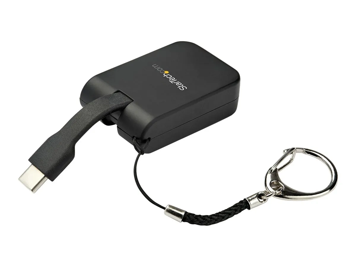 Évitez de perdre votre adaptateur vidéo grâce au porte-clés qui se fixe à votre sac de transport afin de le conserver constamment avec vos appareils. Le porte-clés peut être facilement détaché ou fixé à l''adaptateur selon vos préférences et vos besoins. L''adaptateur est également doté d''un câble flexible de 3,3 cm intégré et pliable lui conférant un format compact.