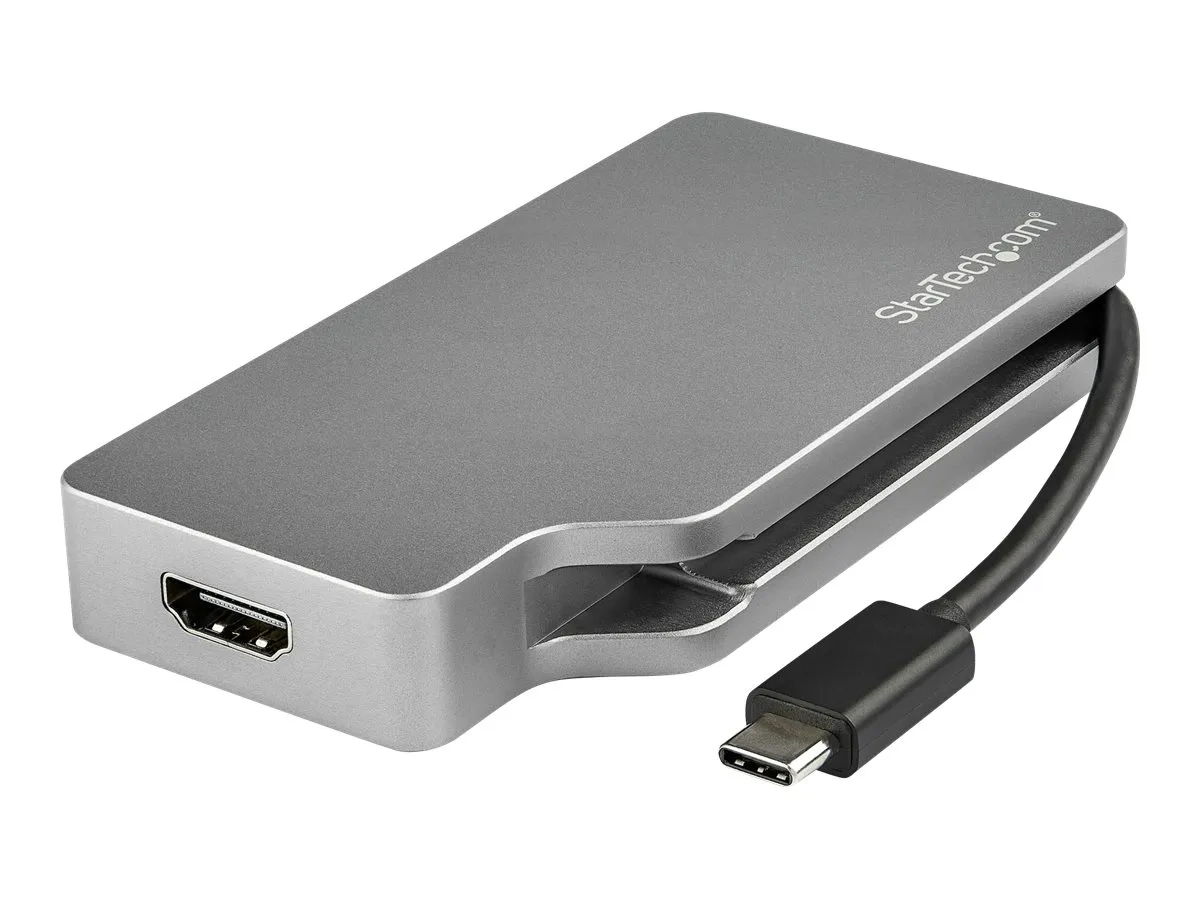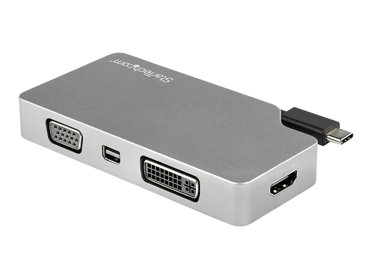 Cet adaptateur vidéo USB-C multiport gris sidéral offre une solution portable pour connecter votre ordinateur portable USB Type-C à un écran VGA, DVI, HDMI ou Mini DisplayPort. L''adaptateur est également disponible en CDPVGDVHDMDP" text="argent (CDPVGDVHDMDP) et en CDPVDHDMDPRG" text="or rose (CDPVDHDMDPRG).