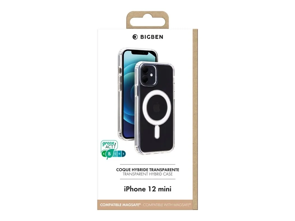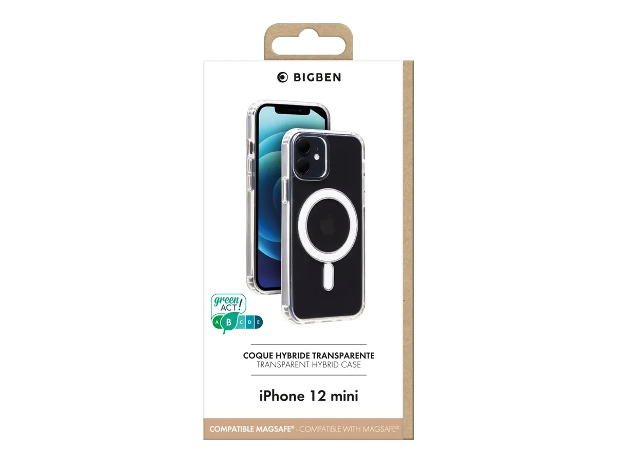 BIGBEN Connected - Coque de protection pour téléphone portable - compatibilité avec MagSafe - polycarbonate, polyuréthanne thermoplastique (TPU) - transparent - pour Apple iPhone 12 mini