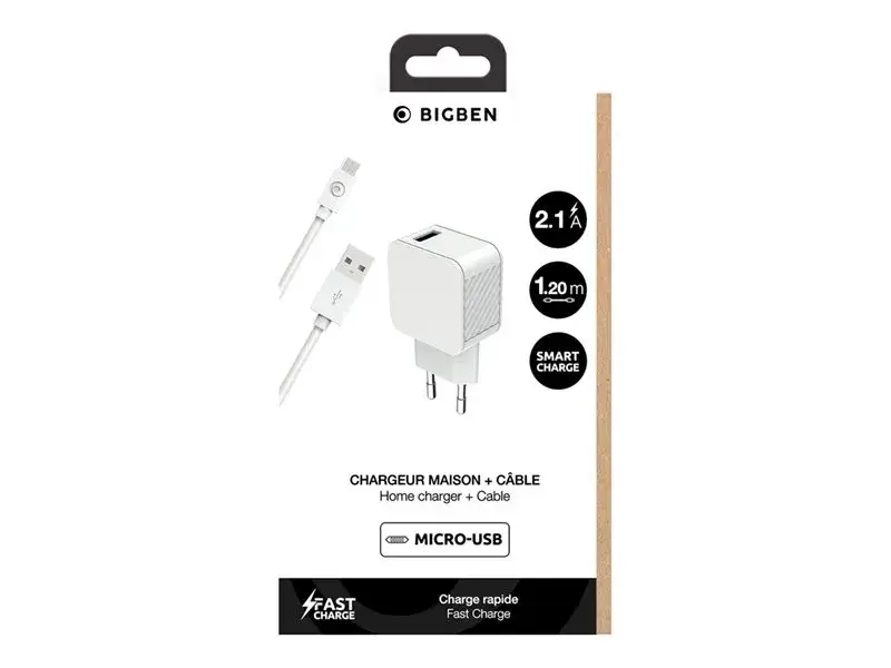 BIGBEN Connected - Adaptateur secteur - 100 % de plastique recyclé - 2.4 A - Smart IC (USB) - sur le câble : Micro-USB - blanc