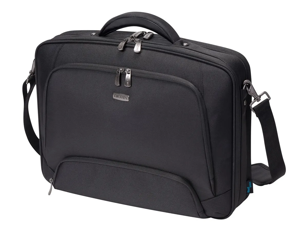 Le système fit-all, avec la sangle intégrée et les éléments de séparation rembourrés, maintient votre ordinateur portable et l'ammène à destination en toute sécurité. Le compartiment pour ordinateur portable verouillable, le rembourrage en mousse à haute densité et le cadre renforcé avec du métal garantissent une protection intégrale. Le compartiment matelassé pour iPad ou d'autres tablettes (jusqu'à 10") dispose d'une doublure extrac douce en nylex et protège en cas de chute. Espace de rangement généreux pour vos documents et accessoires mobiles. Deux compartiments supplémentaires pour documents sur le côté arrière. La poche frontale avec porte-clé et compartiments de rangement organise vos objets personnels. Les poignées rivetées confortables, la sangle rembourrée réglable en longueur et la lanière de fixation offrent un confort de port prolongé. Plus de 20 ans d'expérience réunis dans une sacoche!