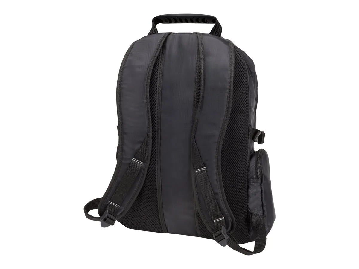 Le vaste compartiment principal offre beaucoup d'espace et vos documents et accessoires sont à portée de main grâce au sous-compartiment prévu à cet effet. Parapluie, bouteille d'eau et lecteur audio peuvent être rangés dans les poches latérales (avec une sortie pour le câble audio).