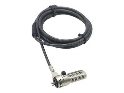 Le Security W-Lock Combination est compatible avec tous les appareils dotés d'une encoche de 3,2 x 4,5 mm. La cale en caoutchouc empêche de rayer l'appareil tout en assurant une stabilité parfaite. Bénéficiez d'une grande flexibilité dans l'aménagement de votre poste de travail grâce à la tête de fermeture orientable et au cylindre rotatif. Le câble en acier multibrin intégré a une longueur de 2 m et un diamètre de 4,4 mm.