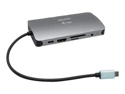 La station d'accueil peut également alimenter votre ordinateur portable jusqu'à 100 W, ce qui signifie que vous pourrez charger tous les ordinateurs portables et tablettes qui prennent en charge la charge via USB-C (USB-C Power Delivery). Le corps en aluminium brossé confère à la station d'accueil une durabilité et une résilience suffisantes, même en cas de déplacements fréquents. Le câble USB-C intégré est suffisamment long pour une connexion confortable, même si le port USB-C est situé dans la partie supérieure du cadre de l'écran (typique pour les ordinateurs portables/tablettes hybrides).
