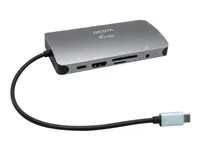Petite station d'accueil USB-C en métal capable de connecter facilement un moniteur ou un projecteur externe via un port HDMI ou VGA. Connectez simplement votre ordinateur portable ou votre tablette (pas besoin d'installer un pilote) et profitez des avantages d'un transfert de données USB rapide, d'une connexion à Internet via un port LAN et de la possibilité de connecter votre casque.