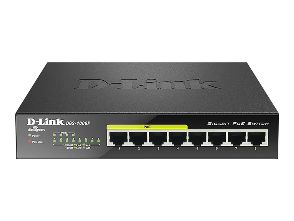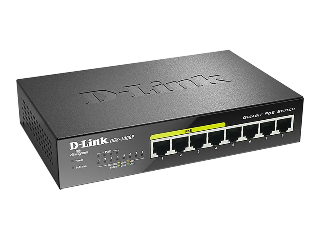 Le commutateur DES-1008P à 8 ports peut alimenter jusqu'à quatre périphériques réseau via les câbles réseau habituels grâce à la technologie Power over Ethernet. Il s'agit d'une solution d'entrée de gamme rentable pour les utilisateurs qui souhaitent tirer le meilleur parti de leur réseau. Le DES-1008P permet aux utilisateurs de connecter et d'alimenter facilement des appareils tels que des points d'accès (AP) sans fil, des caméras IP et des téléphones IP via les câbles réseau habituels.
