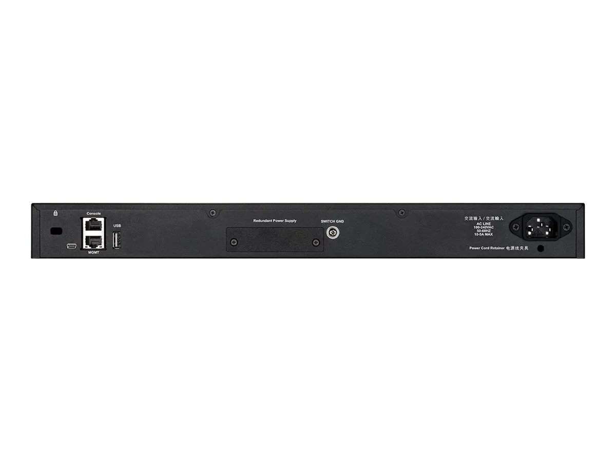 | Interfaces | 48 x 1000Base-T RJ-45 ¦ 2 x 10GBase-T RJ-45 ¦ 4 x 10GBase-X SFP+ ¦ 1 x 10/100/1000 Base-T RJ-45 console ¦ 1 x 10/100/1000 Base-T RJ-45 gestion ¦ 1 x USB 2.0 Type A |