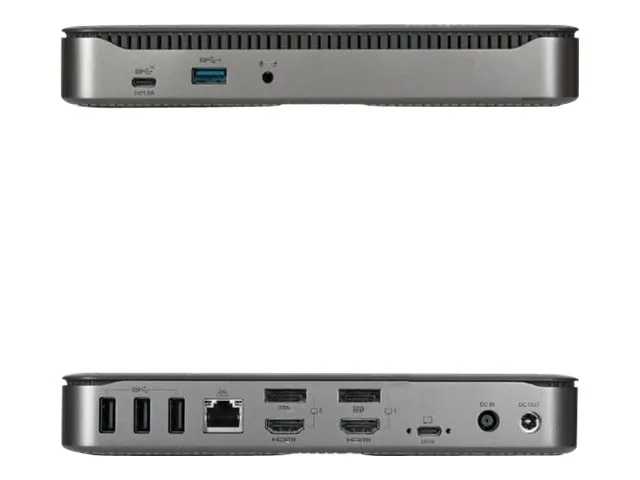Compacte et discrète, cette station d'accueil pour quatre moniteurs, petite mais puissante, est également dotée de ports supplémentaires qui vous permettent de rester connecté et de ne pas encombrer votre espace de travail. De l'USB-C à l'USB-A en passant par les ports audio et Ethernet, vous aurez vraiment tout ce qu'il vous faut.