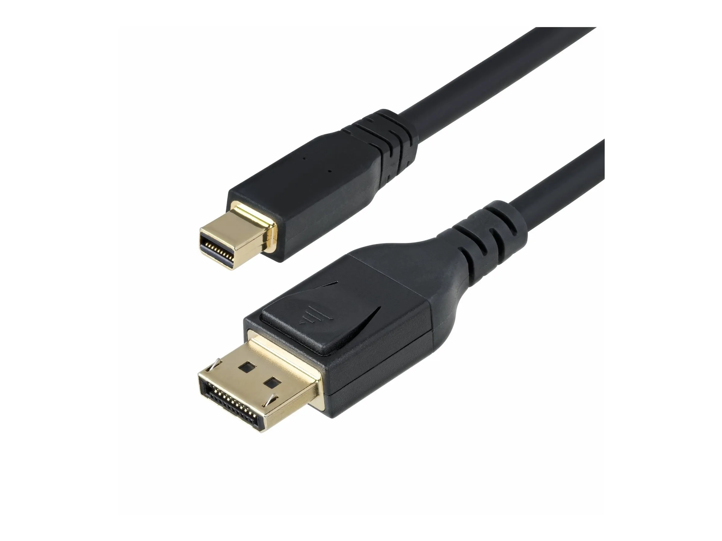 Ce câble adaptateur Mini DisplayPort vers DisplayPort v1.4 est conçu avec des connecteurs DisplayPort plaqués or avec verrouillage, empêchant toute déconnexion accidentelle, ce qui en fait un excellent accessoire pour le bureau ou la salle de conférence.