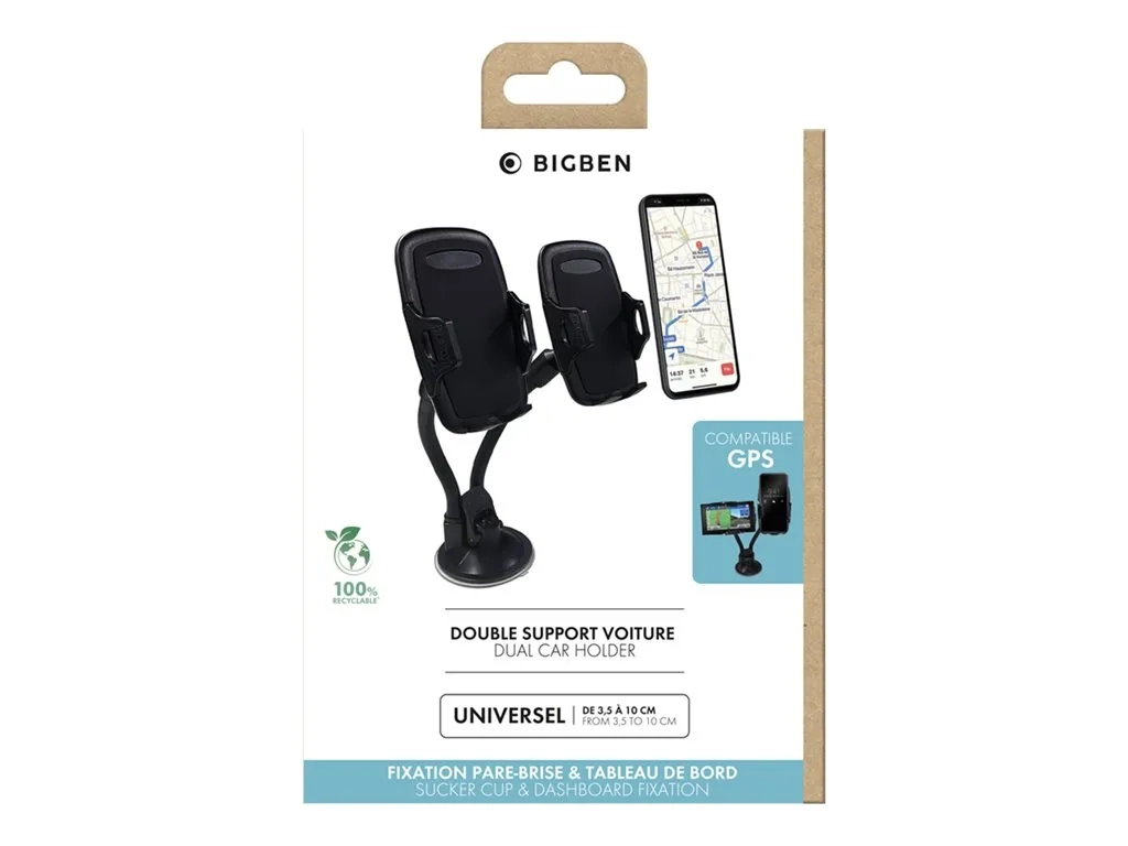 BIGBEN Connected - Double support de voiture pour téléphone portable, navigateur - noir