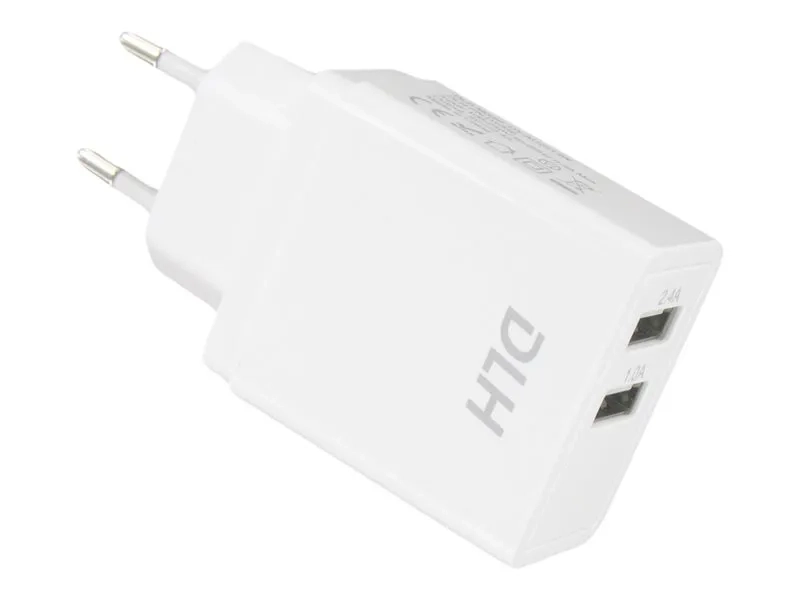 DLH DY-AU2313W - Adaptateur secteur - 12 Watt - 2.4 A - 2 connecteurs de sortie (USB) - blanc