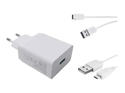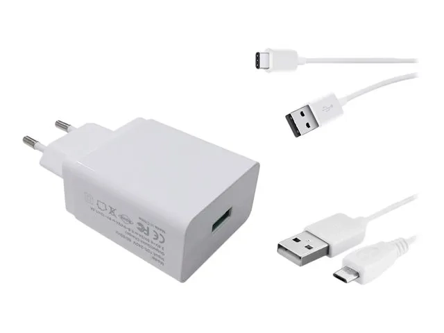 DLH Energy - Adaptateur secteur - 20 Watt - 3 A - QC 3.0 (USB) - sur le câble : Micro-USB, USB-C