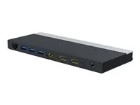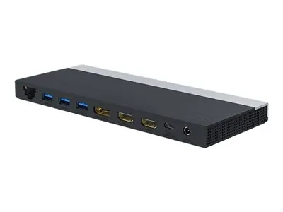 | Interfaces | 1 x USB-C en amont avec Power Delivery (100 W) - 24 pin USB-C ¦ 2 x audio / vidéo - HDMI - HDMI de 19 broches de type A ¦ 1 x audio / vidéo - DisplayPort - DisplayPort 20 broches ¦ 1 x SuperSpeed USB 3.0 with Battery Charging 1.2 - USB 9 broches type A ¦ 3 x SuperSpeed USB 3.0 - USB 9 broches type A ¦ 1 x combo jack microphone/casque - mini-phone 3,5 mm 4 pôles ¦ 1 x réseau - 10Base-T/100Base-TX/1000Base-T - RJ-45 |