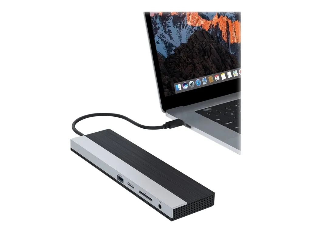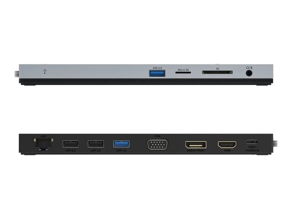| Interfaces | 1 x USB-C avec alimentation électrique (100 W) - 24 pin USB-C ¦ 1 x affichage / vidéo - sortie HDMI - HDMI de 19 broches de type A ¦ 1 x réseau - 10Base-T/100Base-TX/1000Base-T - RJ-45 ¦ 2 x SuperSpeed USB 3.0 - USB 9 broches type A ¦ 1 x audio / vidéo - DisplayPort - DisplayPort 20 broches ¦ 2 x USB 2.0 - USB de type A 4 broches ¦ 1 x affichage / vidéo - VGA - 15 broches HD D-Sub (HD-15) ¦ 1 x audio - casque/microphone - mini-phone stereo 3.5 mm |