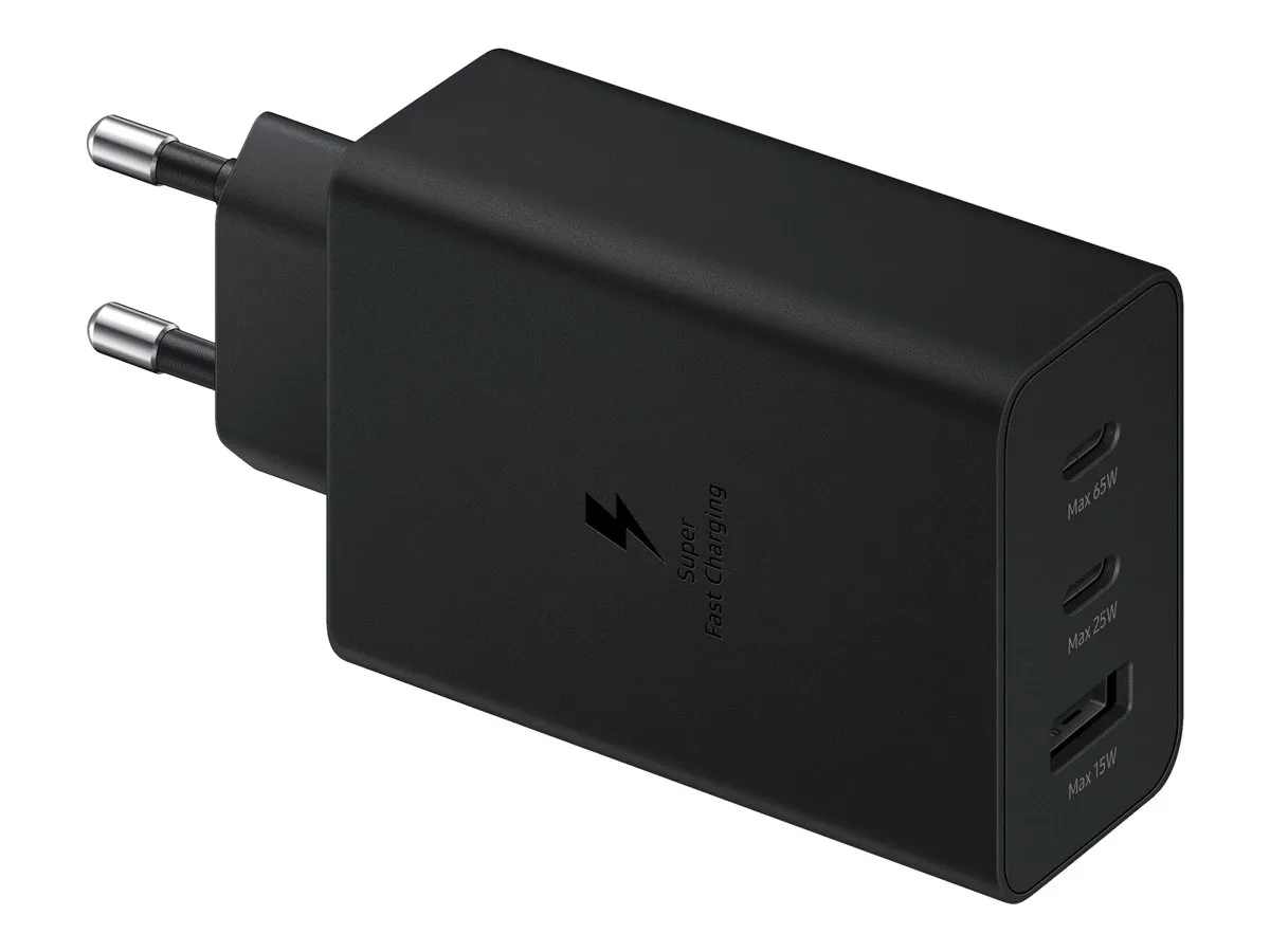 Samsung EP-T6530 - Adaptateur secteur - 65 Watt - 3 A - SFC 2.0, PD 3.0 - 3 connecteurs de sortie (2 x USB-C, USB) - noir
