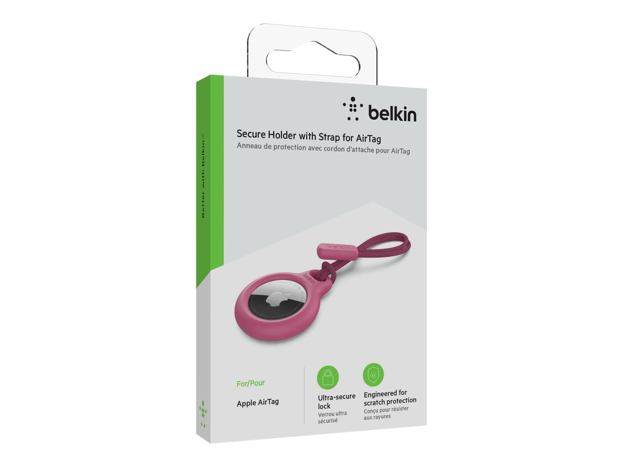 Belkin - Support sécurisé avec sangle pour étiquette Bluetooth anti-perte - rose - pour Apple AirTag