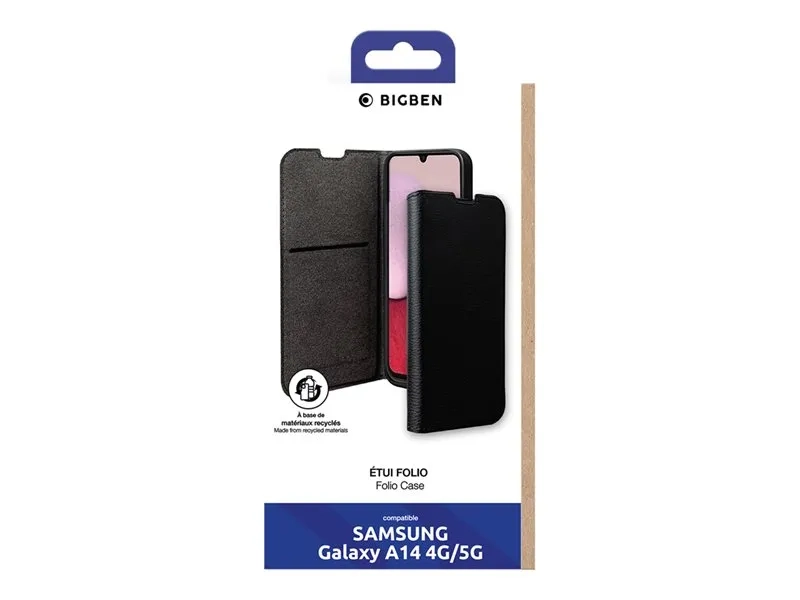 BIGBEN Connected - Étui à rabat pour téléphone portable - 65 % de plastique recyclé, certifié GRS - plastique - noir - pour Samsung Galaxy A14, A14 5G