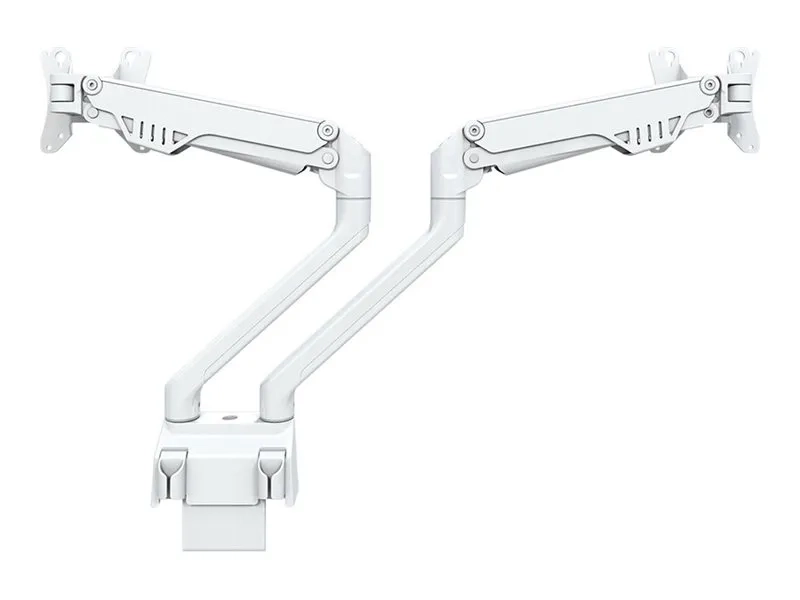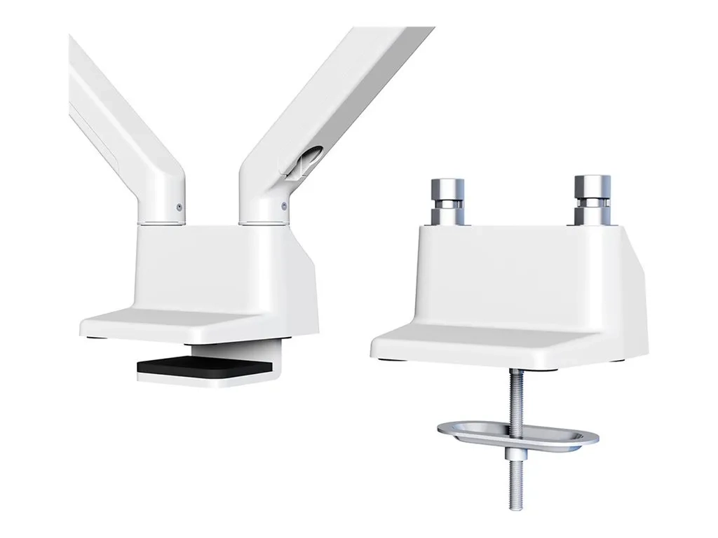 Le support de bureau Neomounts, modèle FPMA-D750DWHITE2, est un support de bureau avec inclinaison, rotation et pivot pour écrans plats jusqu'à 32". Ce support est un excellent choix pour économiser de l'espace sur le bureau en utilisant une pince ou un œillet topfix.