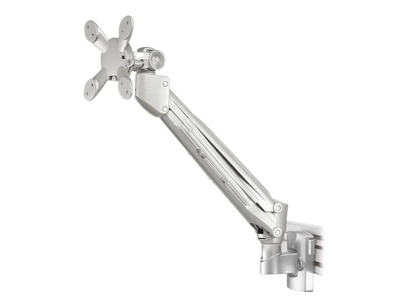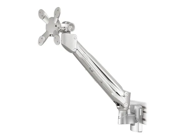 La profondeur est réglable jusqu'à 48 centimètres. Ce support possède trois points de flexion et est adapté pour écrans jusqu'à 30" (76 cm). La capacité de poids de ce produit est de 9 kg. La barre porte-outils est adapté pour les écrans qui répondent au VESA 75x75 et 100x100mm.