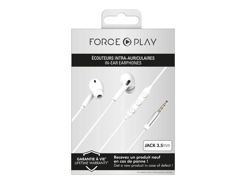 Force Play - Écouteurs avec micro - intra-auriculaire - filaire - jack 3,5mm - blanc