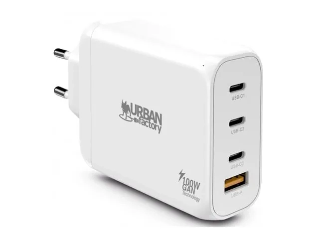 Urban Factory POWEE - Adaptateur secteur - USB-C, GaN - CA 100-240 V - 100 Watt - connecteurs de sortie : 4 - blanc laqué