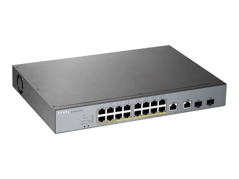 Zyxel GS1350-18HP - Commutateur - intelligent - 16 x 10/100/1000 (PoE+) + 2 x combo Gigabit Ethernet / SFP Gigabit - de bureau - PoE+ (250 W)