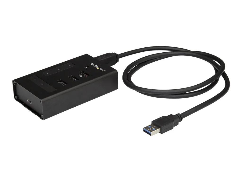 Ce hub USB 3.0 à 4 ports transforme le port USB-A de votre ordinateur portable ou de bureau en deux ports USB-A standard, un port de charge rapide USB-A et un port USB-C . Vous pouvez également étendre la portée de vos appareils USB en utilisant ce hub comme répéteur intermédiaire. Connectez plus d''appareils rapidement et facilement Ce hub 4 ports est conçu pour accéder facilement aux ports lorsqu''il est monté ou installé sur votre bureau. Les ports du hub sont suffisamment éloignés les uns des autres pour brancher ou débrancher facilement vos appareils USB, sans avoir à déconnecter d''autres appareils des ports voisins. Grâce aux ports USB 3.0 supplémentaires, vous pouvez augmenter votre productivité et connecter plus de périphériques à votre ordinateur, ou simplement éviter de devoir échanger les périphériques connectés à votre ordinateur portable à cause d''un nombre de ports limité. Le port USB-C est idéal pour connecter les nouveaux appareils USB-C, comme un disque USB-C externe, au port USB-A traditionnel de votre ordinateur. Il est idéal pour les professionnels des IT et pour toutes les personnes qui ont besoin de brancher et de débrancher régulièrement leurs appareils. Profitez d''une installation à votre convenance Ce hub est l''accessoire idéal pour un ordinateur portable ou de bureau grâce à son boîtier en métal solide qui peut résister à l''usure d''une utilisation quotidienne. Le support mural inclus vous permet de le fixer par exemple à un bureau ou sur un mur, pour mieux répondre à vos besoins. Chargez et synchronisez vos appareils mobiles Le port de charge rapide du hub vous garantit que votre smartphone ou votre tablette soient complètement rechargés et prêts à servir à tout moment. Vous pouvez également synchroniser votre appareil et y accéder pendant qu''il se recharge. Le port de charge USB-A prend en charge la spécification de charge de pile USB 1.2 et fournit une alimentation de 2,4 A au maximum, afin que vous puissiez charger plus vite votre appareil mobile que sur des ports USB traditionnels. Le modèle HB30A3A1CST bénéficie de la garantie StarTech.com de 2 ans et de l''assistance technique à vie gratuite.