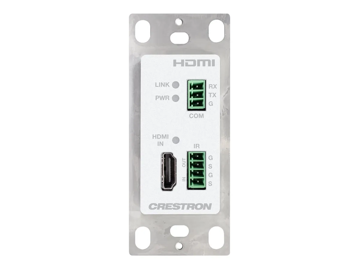 Découvrez la connectivité avec le prolongateur vidéo/audio/infrarouge/série Crestron DM Essentials HD-TXC-4KZ-101-1G-W. Cet appareil encastrable assure la transmission de contenus haute définition, en prenant en charge les résolutions maximales de 4096 x 2160 et 3840 x 2160. Grâce à des fonctions telles que le passage EDID et la prise en charge audio étendue, notamment Dolby TrueHD, DTS-HD Master Audio, il garantit des performances audiovisuelles tout en s'adaptant à des conditions de fonctionnement avec une plage de température de 0 °C à 40 °C et des niveaux d'humidité compris entre 20 % et 90 % HR.