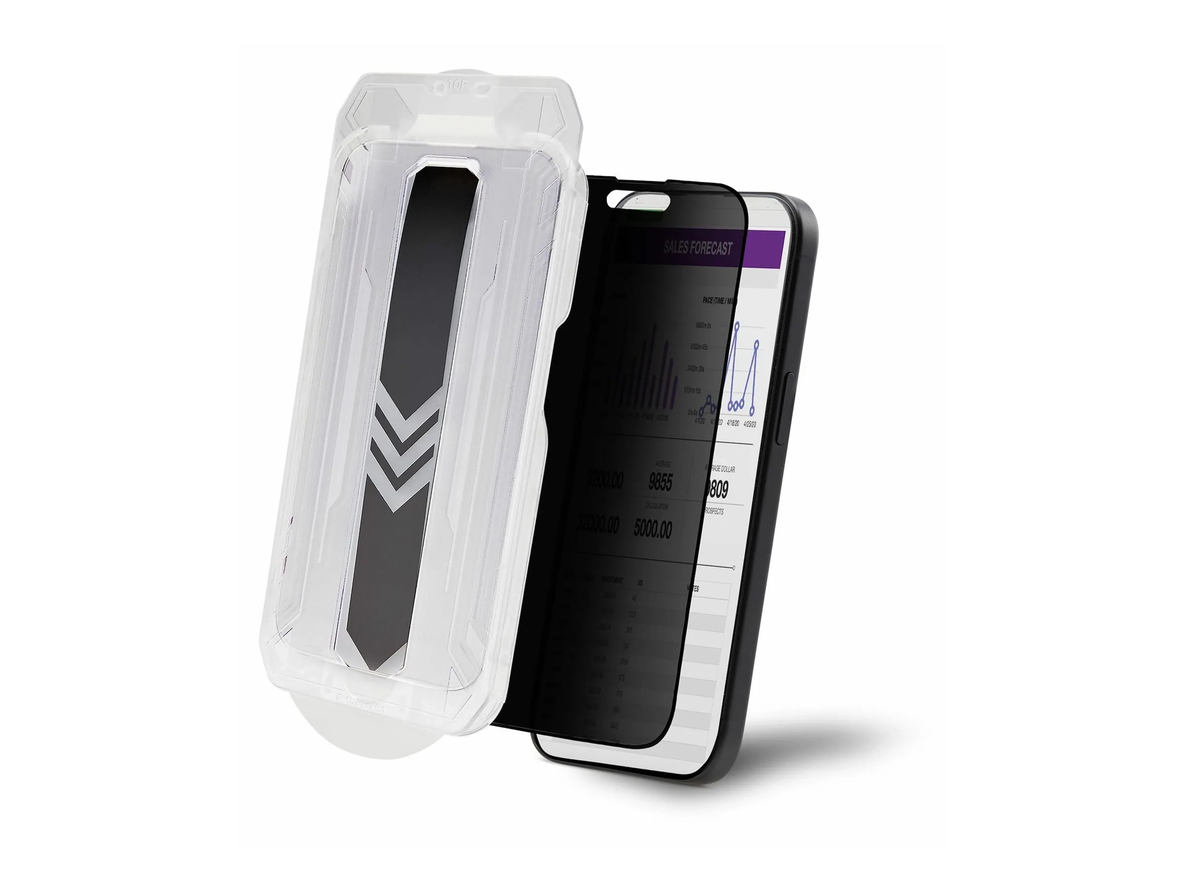 Ce filtre de confidentialité pour iPhone 15 Pro Max passe en douceur d'une vue claire à un écran obscurci au-delà de l'angle de vision prévu, améliorant ainsi considérablement la confidentialité visuelle dans les environnements de bureau ou publics.