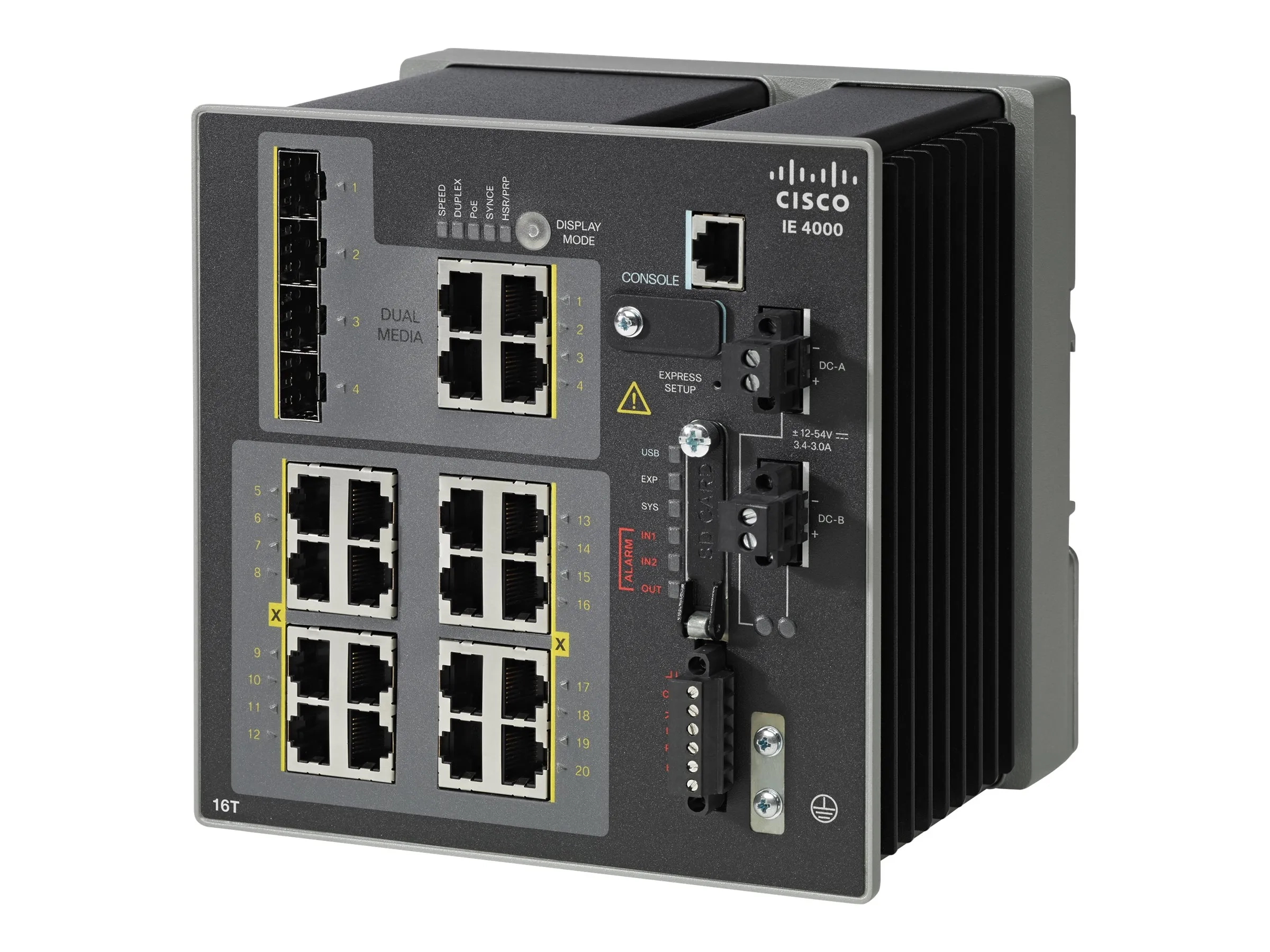 Cisco Industrial Ethernet 4000 Series - Commutateur - Géré - 16 x 10/100 + 4 x SFP Gigabit combiné - Montage sur rail DIN - DC power - Conformité TAA