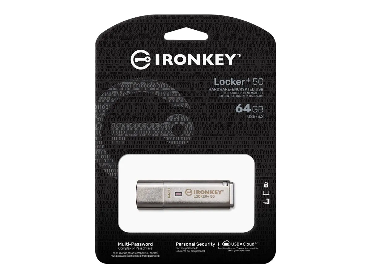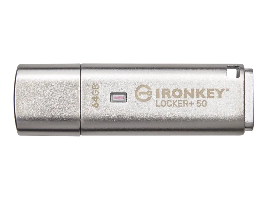 Les clés USB Kingston IronKey Locker+ 50 offrent une protection de niveau grand public avec chiffrement matériel AES en mode XTS, comprenant des protections contre BadUSB les micrologiciels à signature numérique et les attaques de mot de passe par force brute. La LP50 est également conforme à la norme TAA.