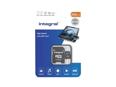 Integral - Carte mémoire flash (adaptateur microSDXC vers SD inclus(e)) - 256 Go - A1 / Video Class V30 / UHS-I U3 / Class10 - microSDXC UHS-I