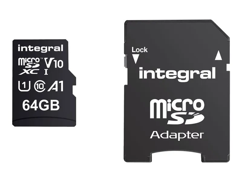 Integral - Carte mémoire flash (adaptateur microSDXC vers SD inclus(e)) - 64 Go - A1 / Video Class V10 / UHS Class 1 / Class10 - microSDXC UHS-I