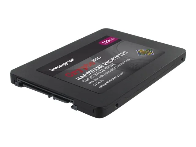 Integral Crypto SSD Hardware Encrypted FIPS 140-2 - SSD - chiffré - 128 Go - interne - 2.5" (dans un support de 3,5") - SATA 6Gb/s - mémoire tampon : 256 Mo - FIPS 140-2, AES 256 bits