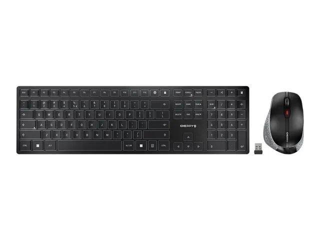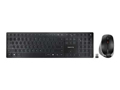 CHERRY DW 9500 SLIM - Ensemble clavier et souris - sans fil - 2.4 GHz, Bluetooth 4.0 - US avec le symbole de l'euro - commutateur : CHERRY SX - gris, noir - emballage sans plastique