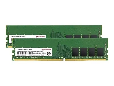 Transcend JetRAM - DDR4 - kit - 32 Go: 2 x 16 Go - DIMM 288 broches - 3200 MHz / PC4-25600 - CL22 - 1.2 V - mémoire sans tampon - non ECC