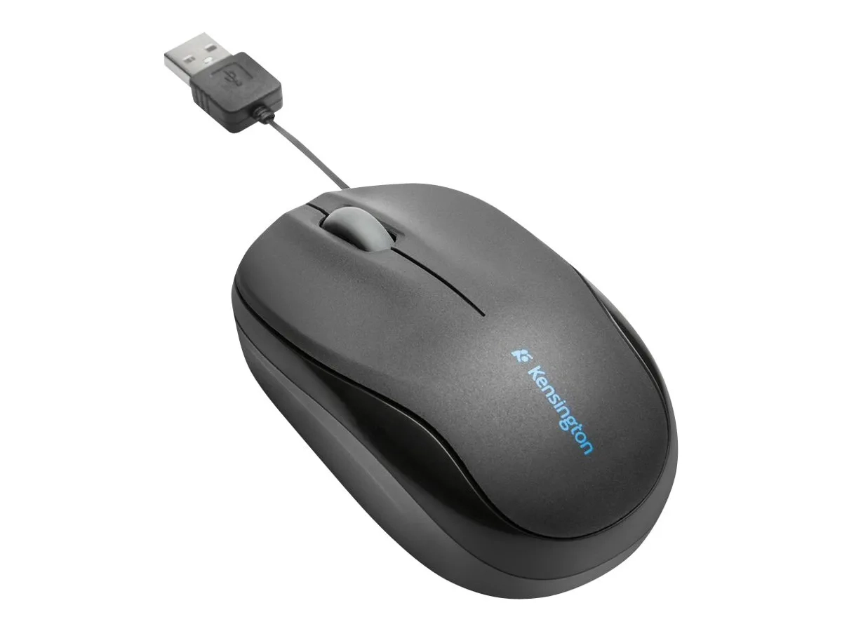 Kensington Pro Fit Retractable Mobile - Souris - optique - 3 boutons - filaire - USB - noir
