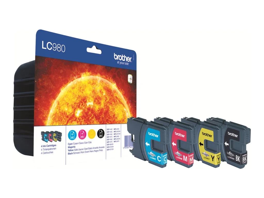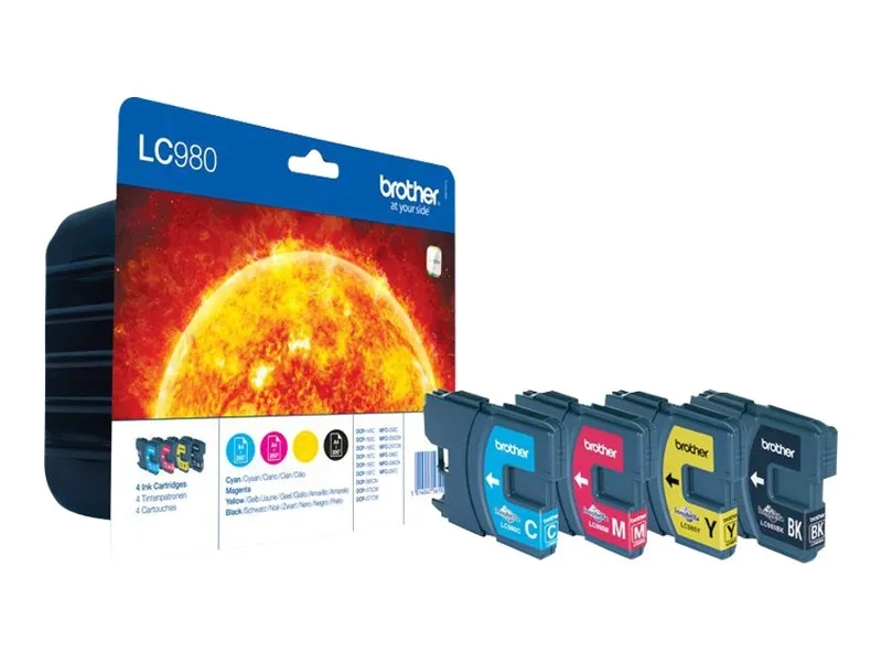 Brother LC980VALBPDR - Pack de 4 - noir, jaune, cyan, magenta - original - blister - cartouche d'encre - pour Brother DCP-145, 163, 165, 195, 365, 373, 375, 377, MFC-250, 290, 295, 297