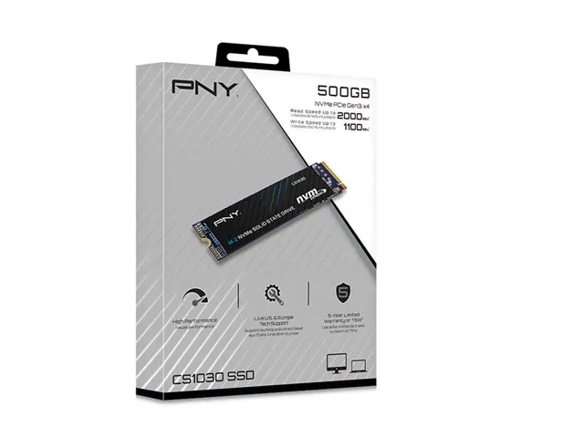 Le PNY CS1030 M.2 NVMe SSD est un excellent choix pour une mise à niveau NVMe à partir d'un lecteur à état solide (SSD) basé sur SATA ou d'un disque dur traditionnel dans un ordinateur de bureau ou portable compatible NVMe. Le disque CS1030 est conçu pour être une mise à niveau du stockage conventionnel basé sur SATA afin de tirer parti de la bande passante élevée de l'interface NVMe pour aider à réaliser des temps de démarrage plus rapides, des lancements d'applications plus rapides et de meilleures performances globales du système. Faites-en plus en moins de temps avec NVMe ; démarrez, éteignez et chargez des applications jusqu'à 4 fois plus vite qu'avec des disques SSD basés sur SATA. L'interface NVMe offre des performances exceptionnelles allant jusqu'à 2 500 Mo/s en lecture et 1 900 Mo/s en écriture. Elle est conçue pour remplacer de manière performante le stockage traditionnel basé sur SATA afin d'accélérer les temps de démarrage, les lancements d'applications et les performances globales du système. Sans pièces mobiles, le PNY CS1030 M.2 NVMe SSD est très durable et moins susceptible de tomber en panne. Le PNY CS1030 est conçu avec le même niveau de qualité et de durabilité que les consommateurs ont apprécié avec le SSD CS900.