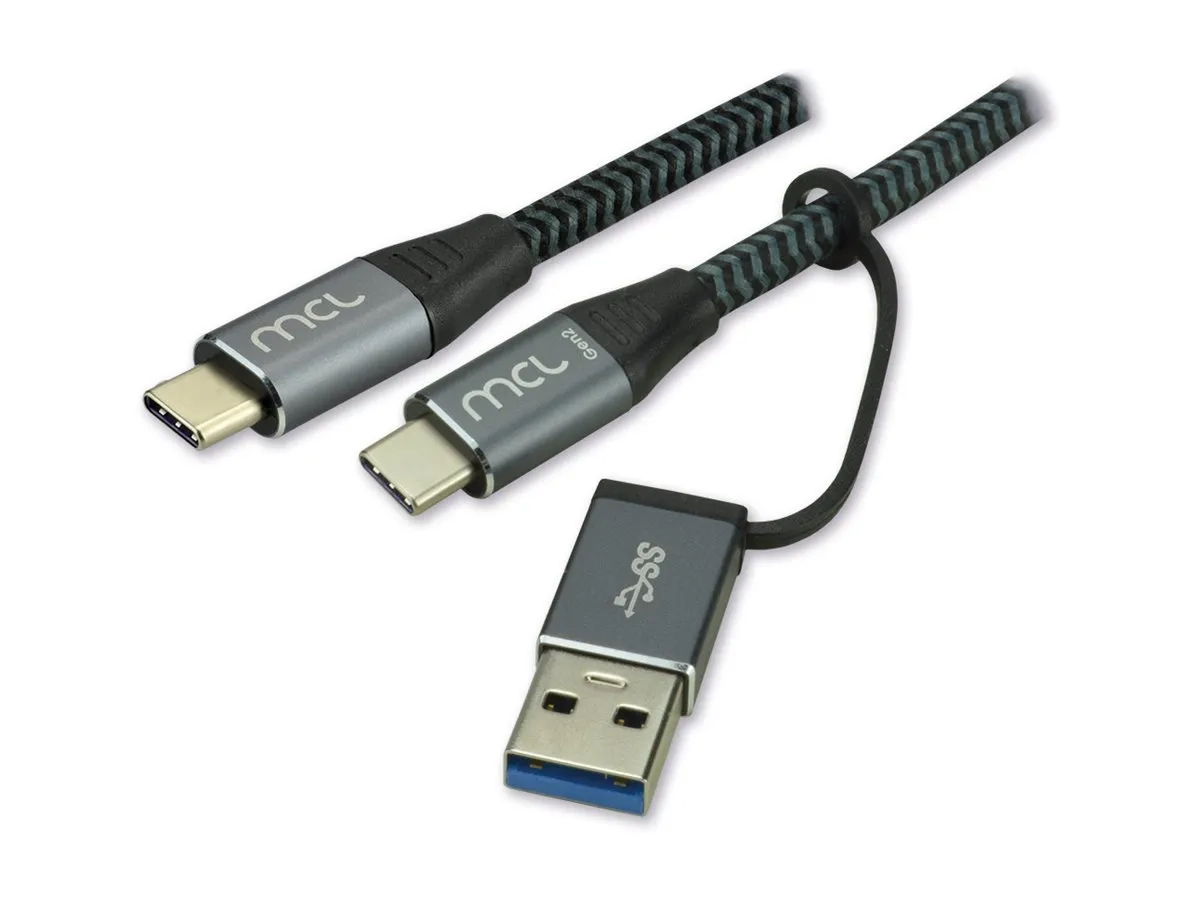 MCL - Câble USB - USB-C (M) pour USB type A, USB-C (M) - USB 3.2 Gen 2 - 5 A - 2 m - Alimentation USB (100 W) - noir et gris