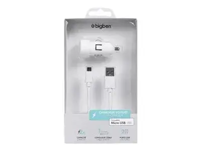 BIGBEN Connected - Adaptateur d'alimentation pour voiture - 2.4 A - 2 connecteurs de sortie (USB) - blanc