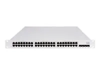 Le Cisco Meraki MS150 48LP-4G est un commutateur réseau empilable conçu pour diverses applications. Avec 48 ports prenant en charge PoE+, ce commutateur offre une puissance PoE totale de 370 W, ce qui le rend adapté à l'alimentation d'appareils tels que les téléphones IP et les caméras. Il dispose d'une inspection ARP dynamique, d'une surveillance DHCP et d'un contrôle des tempêtes de diffusion pour améliorer la sécurité et les performances du réseau. Les capacités de gestion à distance via SNMP et Syslog permettent une surveillance et une gestion faciles, garantissant un fonctionnement optimal dans les environnements exigeants.