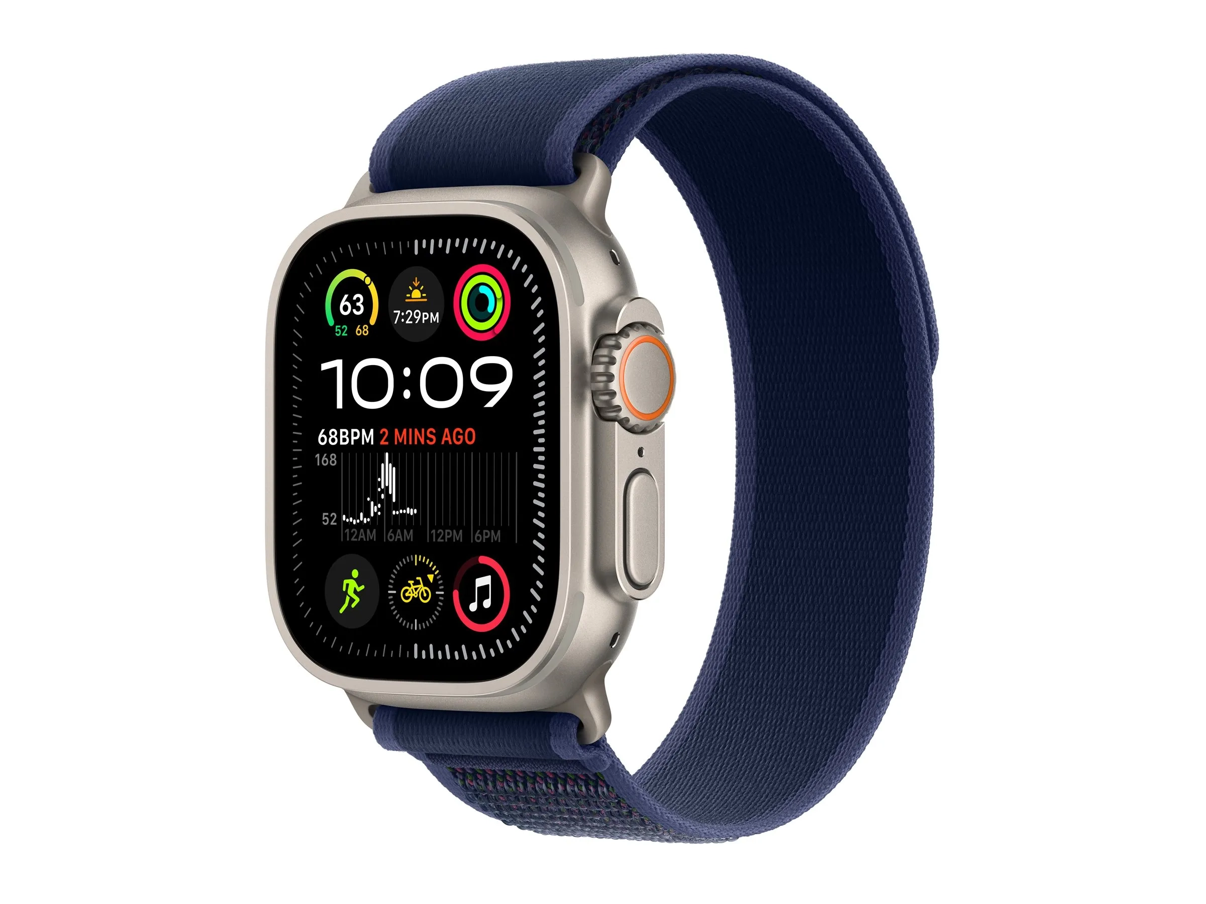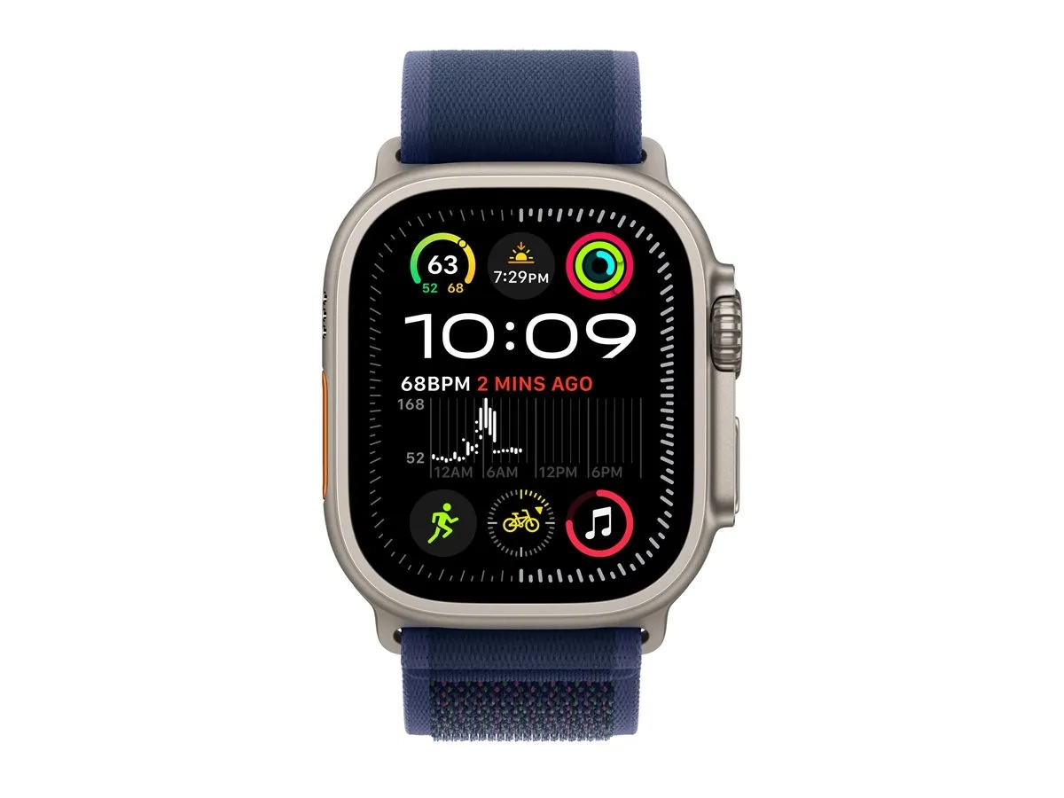 Apple Watch Ultra 2 - 49 mm - titanium naturel - montre intelligente avec Boucle Trail - tissage en nylon - bleu - taille du bracelet : M/L - 64 Go - LTE, Wi-Fi 4, UWB, Bluetooth - 4G - 61.4 g