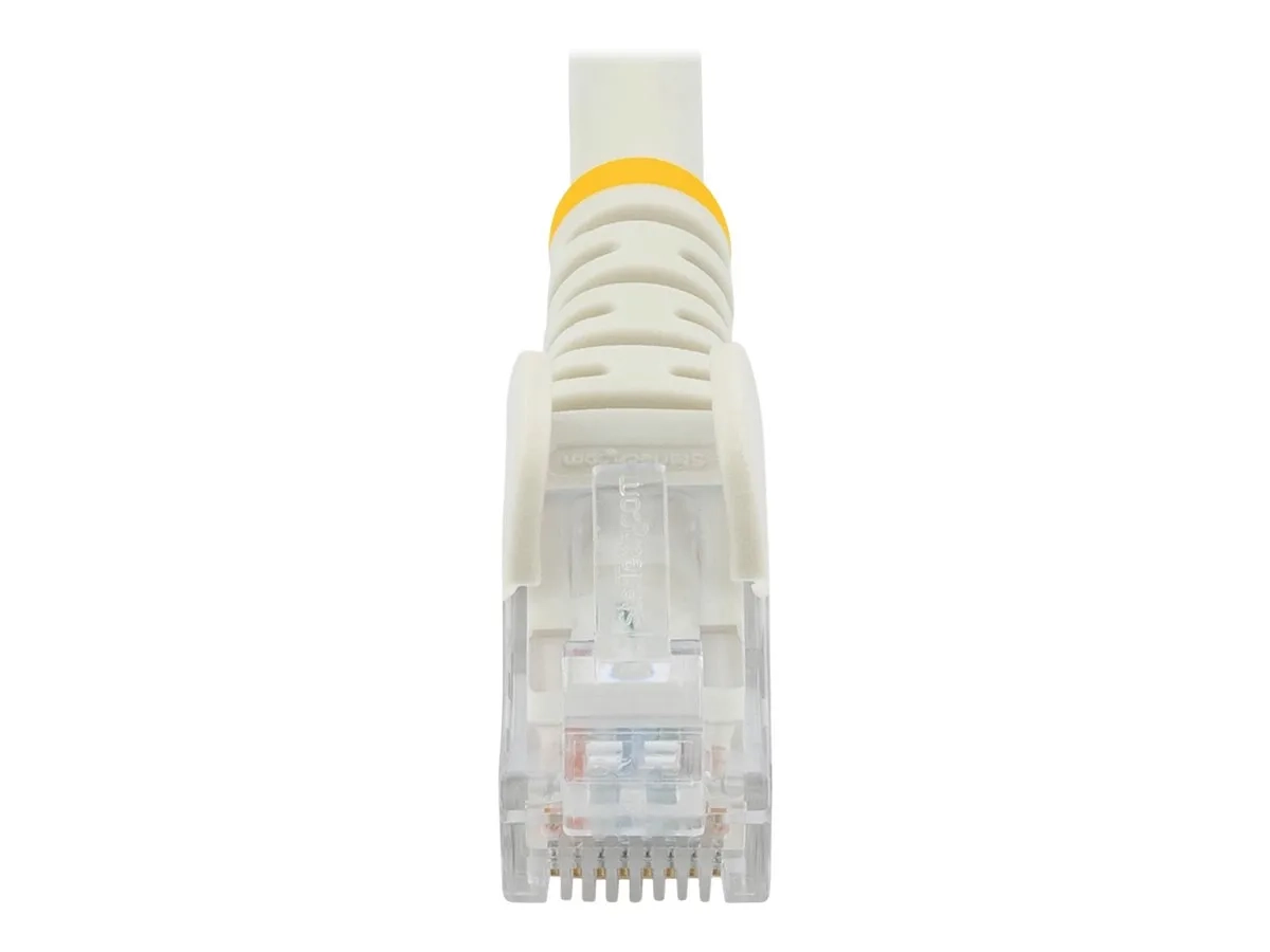 Durable, ce câble patch Cat6 de qualité supérieure est fabriqué sans crochet, ce qui contribue à protéger les clips du connecteur RJ45 et à éviter qu'il se coince pendant l'installation. Parallèlement, son serre-câble moulé en PVC empêche les terminaisons du connecteur RJ45 de trop se plier et réduit, du même coup, les risques de dommages.